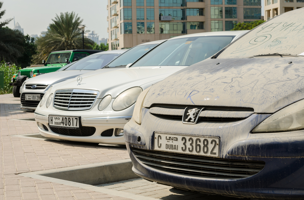 In case your vehicle is considered to be dirty when parked in public places, a notice will be placed on it by the authorities. This notice is your directive to wash or take away the vehicle within stated time, usually 15 days. Failure to do so attracts a Dhs500 fine and the vehicle may be towed to a pound.